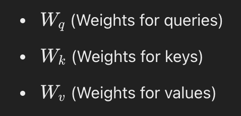 Essas matrizes transformam os embeddings originais em um novo espaço adequado para calcular a atenção.