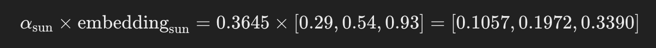 > Basta pegar cada peso de atenção e multiplicá-lo pelas dimensões do token relacionado e, em seguida, somar todas as dimensões para obter apenas 1 vetor (o vetor de contexto)