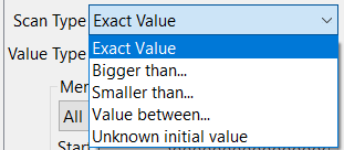 Then, you do something so that value changes, and you stop the game and perform a next scan: