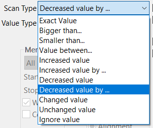 Then, make the value change, indicate how the value changed (in my case it was decreased by 1) and perform a next scan: