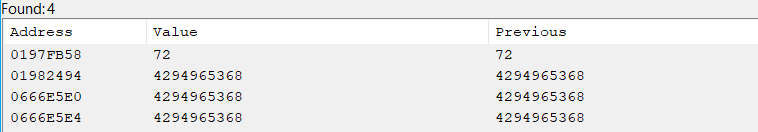 Then, make the value change, indicate how the value changed (in my case it was decreased by 1) and perform a next scan: