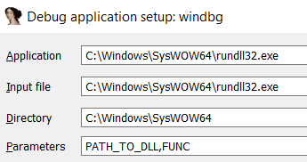 Poi, quando inizi a fare il debug l'esecuzione si fermerà quando ogni DLL viene caricata, quindi, quando rundll32 carica la tua DLL, l'esecuzione si fermerà.