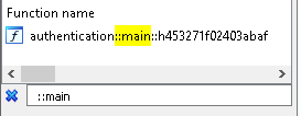 Om die toegangspunt te vind, soek die funksies deur ::main soos in: