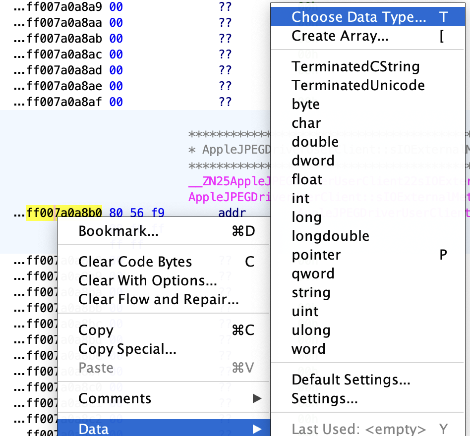 现在,跟随 (IOExternalMethodDispatch2022 *)&sIOExternalMethodArray,您可以看到很多数据:
