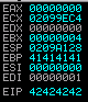 Com esse buffer, o EIP quebrou e deve apontar para 42424242 ("BBBB")