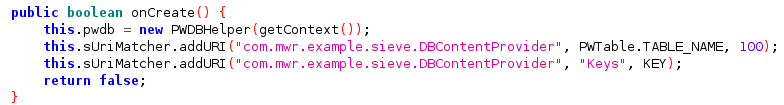 Είναι δυνατόν να συνθέσουμε πώς να φτάσουμε στον DBContentProvider ξεκινώντας τα URIs με “content://”. Αυτή η προσέγγιση βασίζεται σε πληροφορίες που αποκτήθηκαν από τη χρήση του Drozer, όπου κρίσιμες πληροφορίες βρίσκονταν στον /Keys φάκελο.