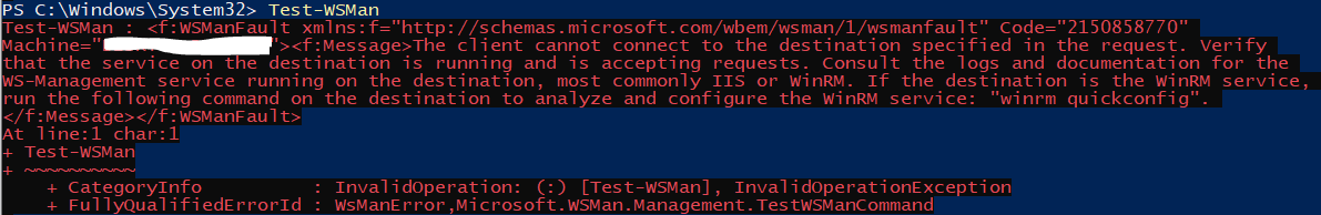 - Αντίθετα, για έναν στόχο μη ρυθμισμένο για WinRM, αυτό θα είχε ως αποτέλεσμα να μην υπάρχουν τέτοιες λεπτομερείς πληροφορίες, υπογραμμίζοντας την απουσία σωστής ρύθμισης του WinRM.
