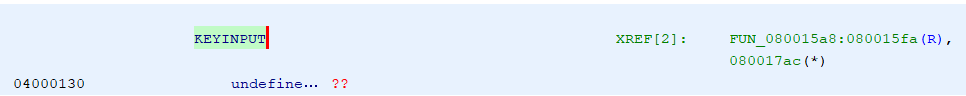 So, in this kind of program, the interesting part will be hoe die program die gebruiker invoer hanteer. In die adres 0x4000130 sal jy die algemeen aangetrefde funksie vind: KEYINPUT.