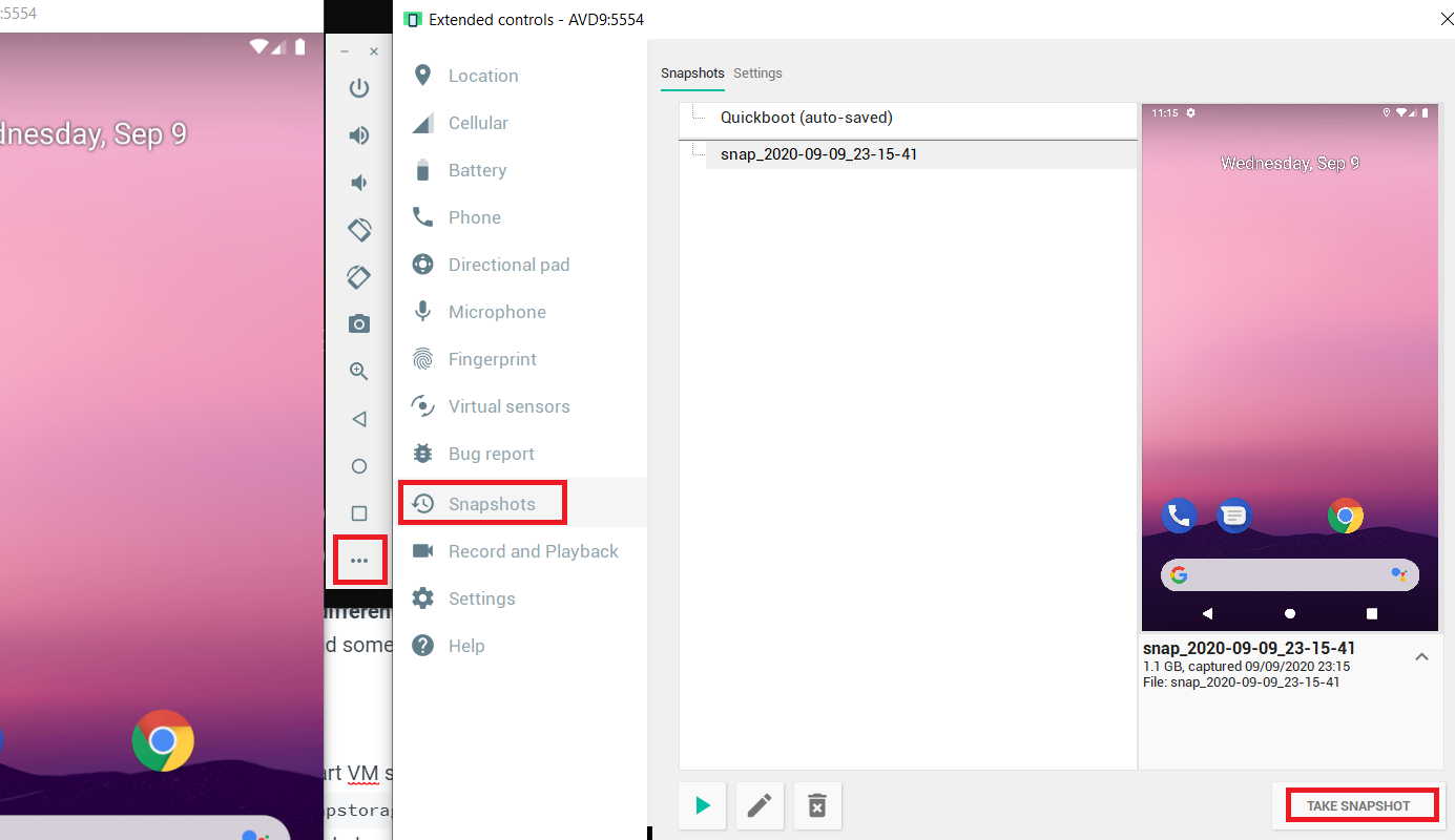 -snapshot name: Uruchom snapshot VM-snapshot-list -snapstorage ~/.android/avd/Nexus_5X_API_23.avd/snapshots-test.img: Wyświetl wszystkie zarejestrowane snapshoty