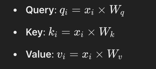 Κάθε token θα έχει τον δικό του πίνακα query, key και value πολλαπλασιάζοντας τις τιμές διάστασης του με τους καθορισμένους πίνακες: