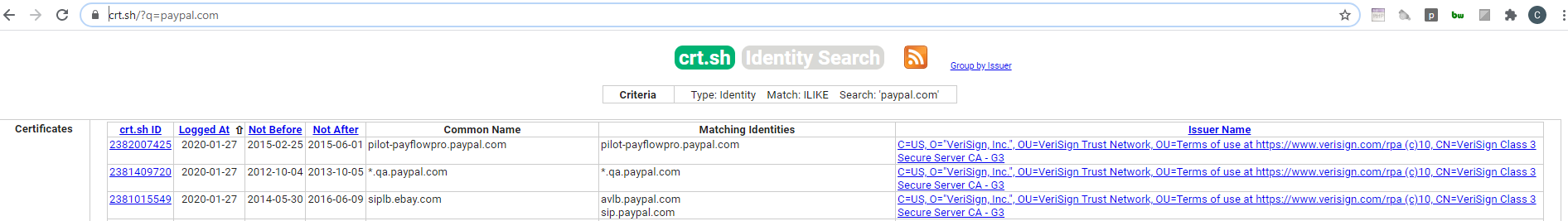 然而,您可以使用免费的网页crt.sh做“同样的事情”。您可以搜索关键字,并根据需要按日期和CA过滤结果。